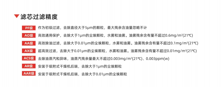 过滤精度,作为衡量过滤器性能的核心指标,直接关乎到压缩空气的洁净程度。